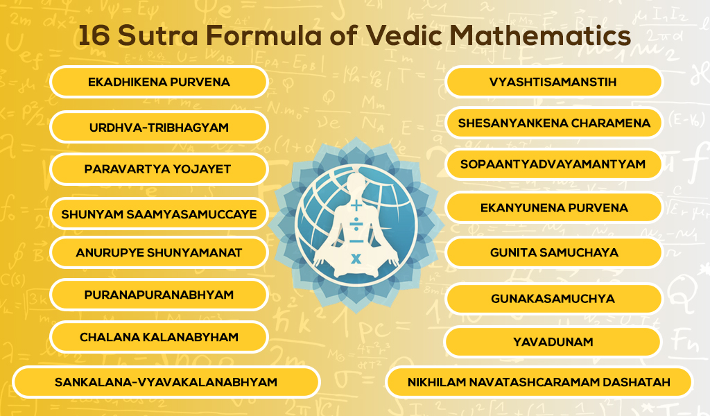 Vedic-Maths is based on sixteen sutras, which were unravelled by Swami Bharati Krishna tirtha Ji Maharaj, the Shankaracharya of Govardhan peeth, puri. The Atharvaveda is said to have lots of information on science and mathematics and it is from there, Shankaracharya of Goverdhan peeth puri, decoded the whole information and presented it in the form of 16 sutras.